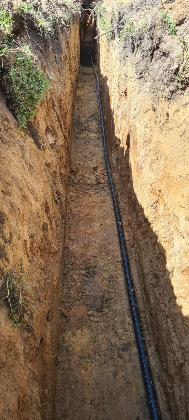 Paigaldasime PE-toru külmumispiirist allapoole, et tagada torustiku töökindlus ka karmides talvetingimustes. Toru paigutati sirgelt kaevise ühte serva, mis muudab selle hilisema leidmise lihtsamaks juhul, kui läheduses peaks tulevikus tekkima vajadus kaevetöödeks.