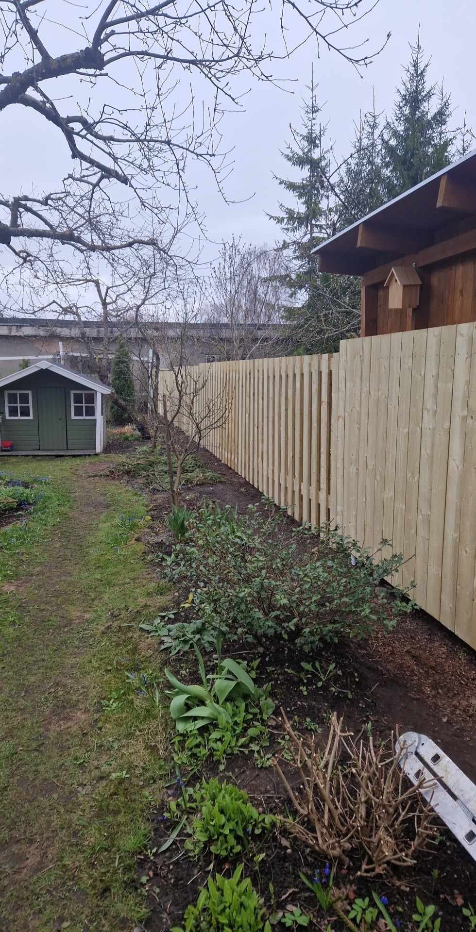 Täielik piirdeaia paigaldus elamukrundile Supilinna ajaloolises linnaosas Tartus. Tööd hõlmasid vana aia eemaldamist, uue vertikaalse täislaudaia (privaatsusstiil) paigaldamist tänava poolsele küljele ning vahega lippaiaosa paigaldamist aia/tagahoovi piiril. Postid kinnitatud betoonalusele kruusaalusega. Aed kulgeb mööda mitut krundipiiri, sealhulgas pikemat tänavapoolset lõiku. Krundil asub viljapuudega küps aed ja aiamaja.